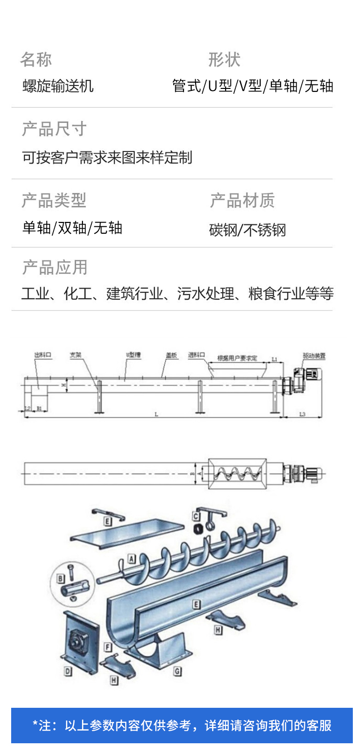 中安定制单轴螺旋输送机 物料传输设备生产厂家