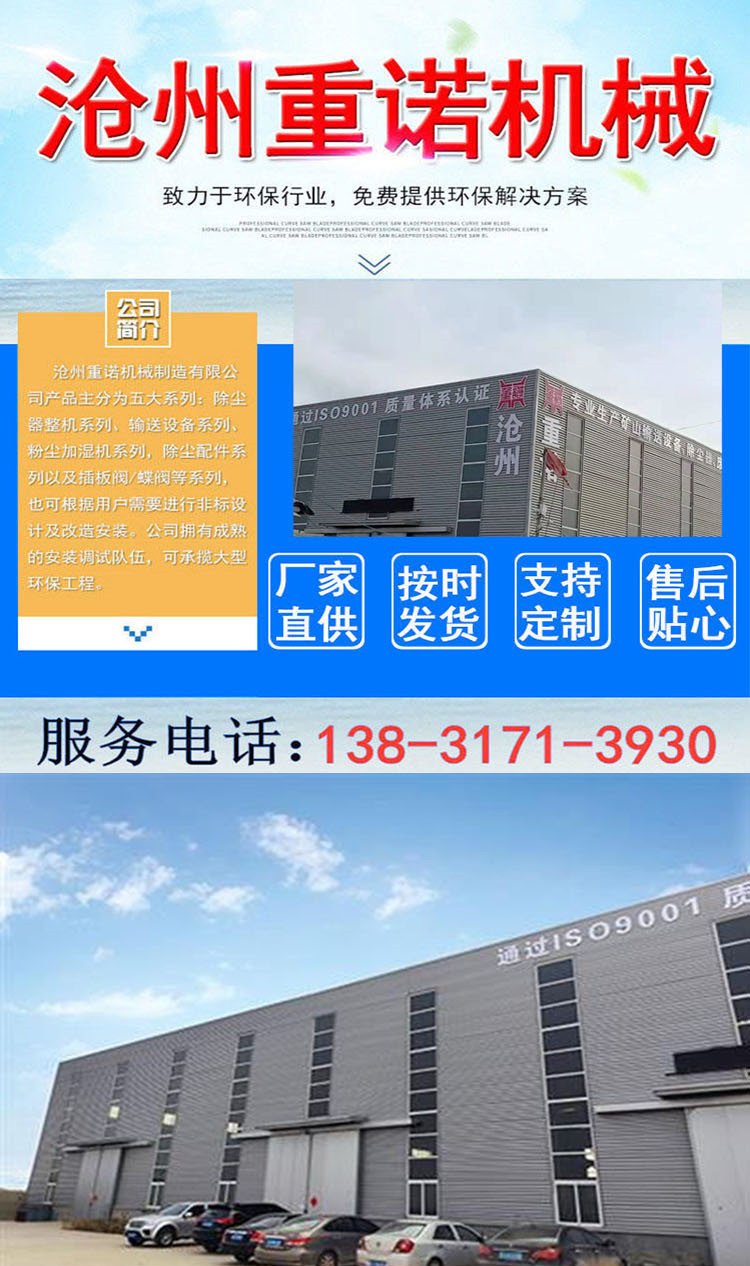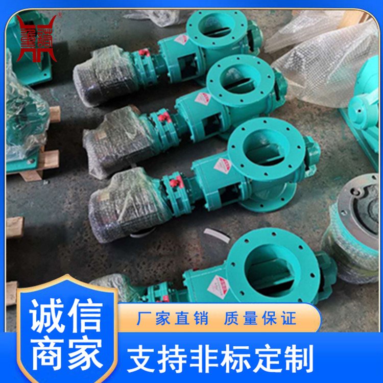 星型卸料器工作时,粉尘靠重力落入,充满上面和侧面的星形叶片空格。叶片转子由电动机通过减速机转动轴带动,叶轮转到下部粉尘靠自重卸下。这种卸尘器一般都安装在除尘器灰斗下部,为保证连接处的严密不漏风,在回转卸料器的上部应经常保持(储存)一定高度的粉尘。因为叶轮转动时,卸完粉尘后叶轮转上的那一面经常是没有粉尘的,所以容易使空气漏入。为了保持一定高度的灰柱,而且不致卸空,*在灰斗内装设料位信号设施,并与卸尘阀的电动机建立连锁。