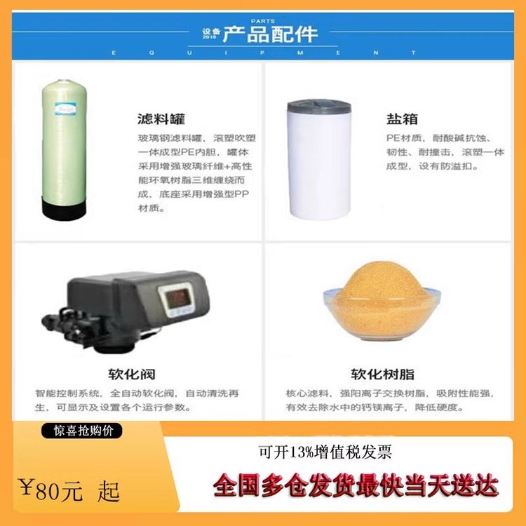 工业商用家用树脂软化水石英砂活性炭锰砂玻璃钢不锈钢过滤器