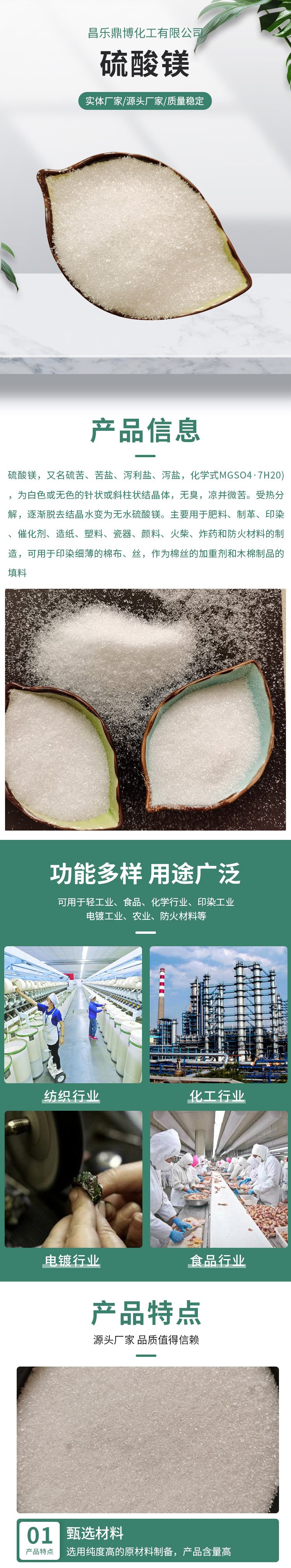 叶面肥、导泻剂、硫酸镁、印染助剂、饲料添加剂