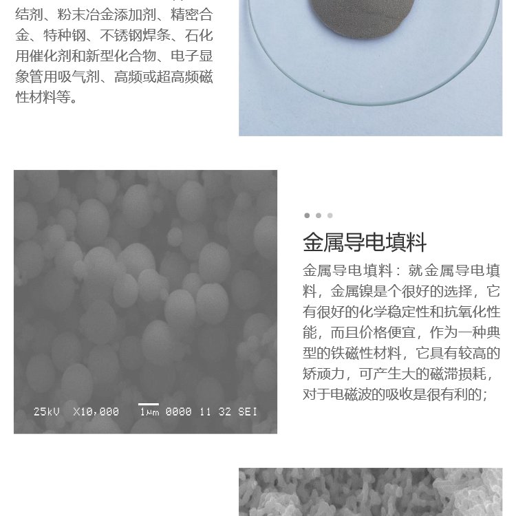 电解镍粉、高纯镍粉、雾化镍粉、耐磨喷涂粉、镍包铜导电粉、珠链状镍导电粉、镍包石墨导电粉