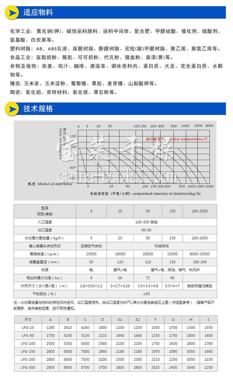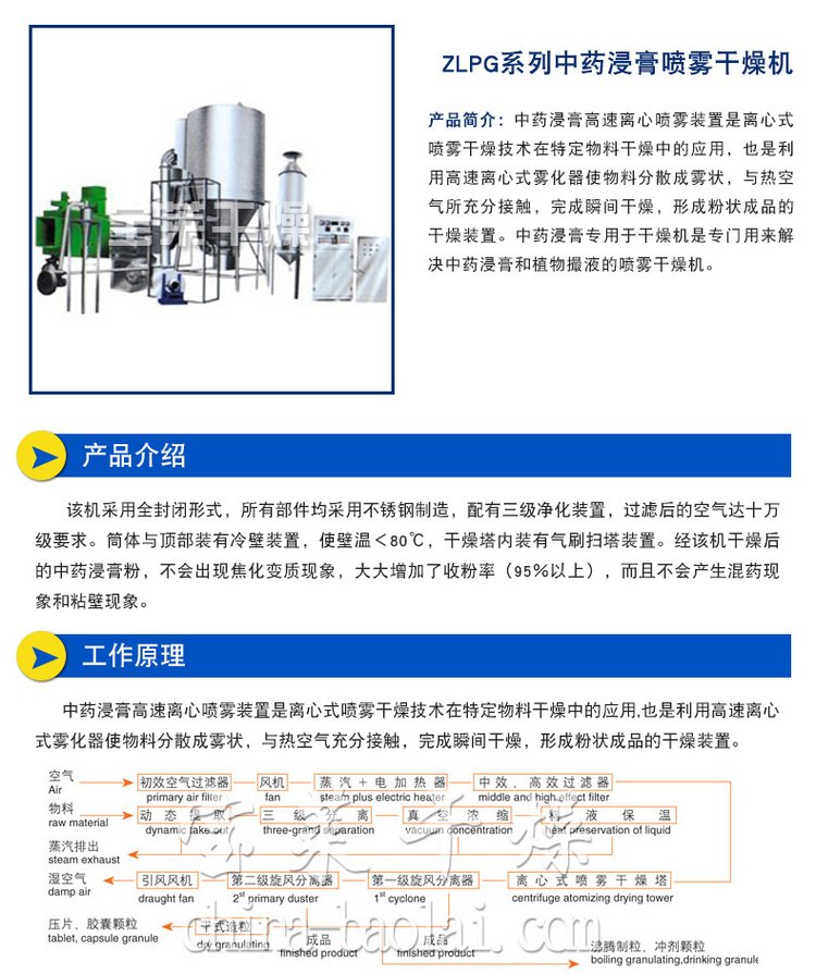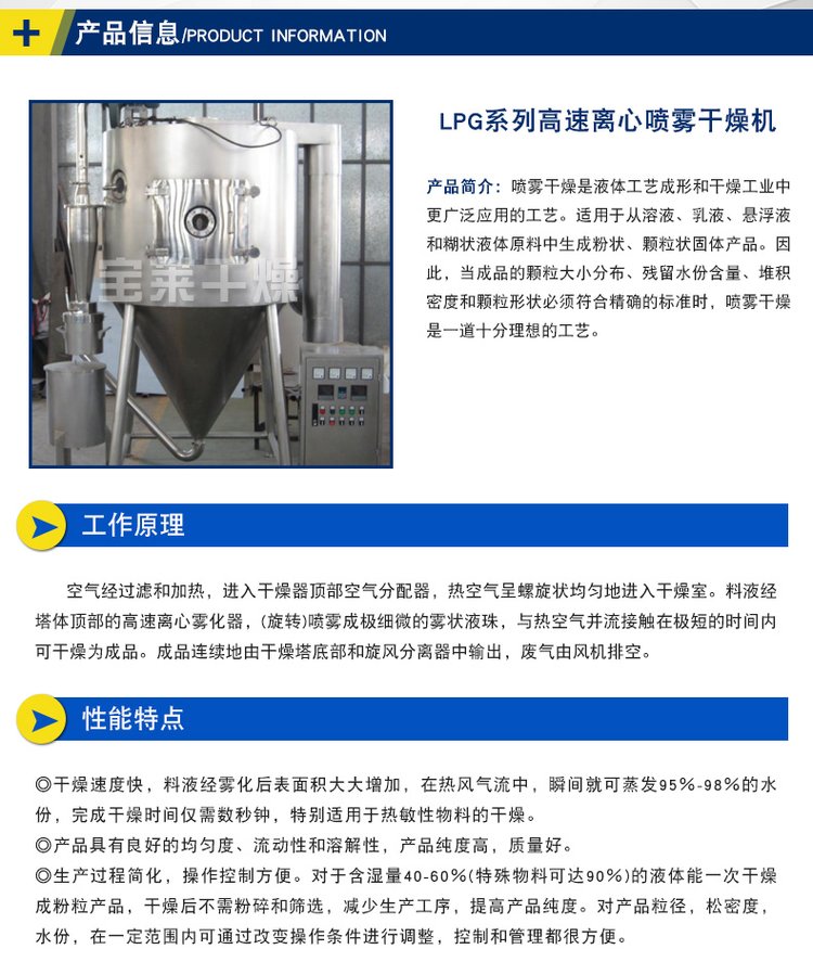 宝莱干燥 复合肥喷雾烘干机 LPG系列高速离心喷雾干燥机