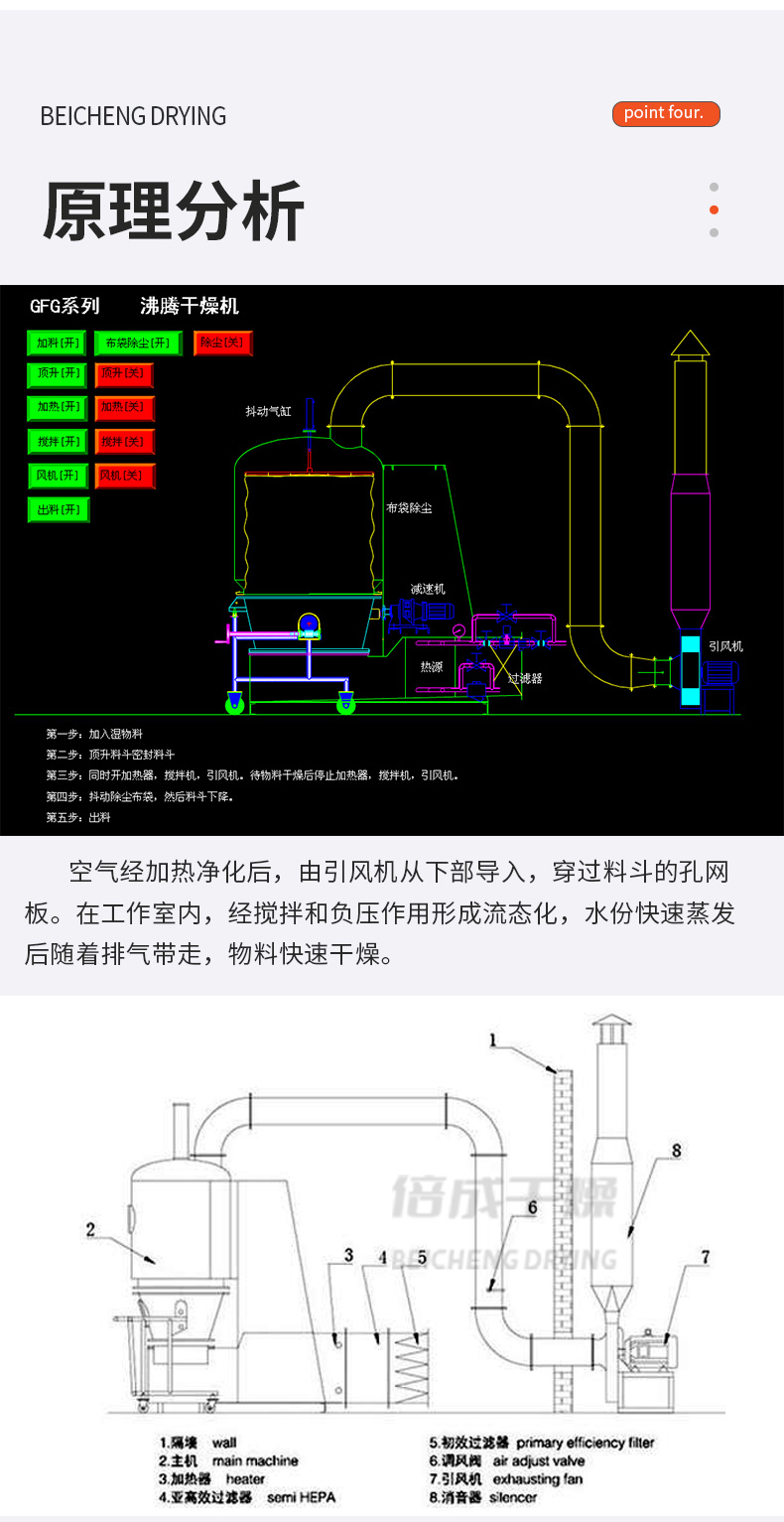 高效沸腾干燥机 自动操作烘干 性能稳定 坚固耐用 装卸料轻便快速 倍成