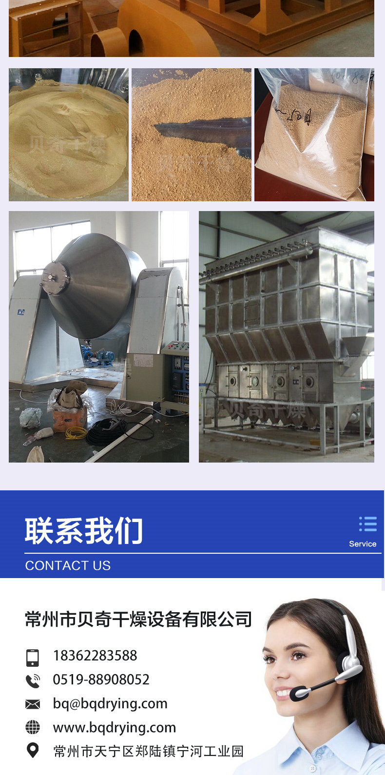 双锥回转真空干燥机、耙式干燥机、盘式干燥机、闪蒸干燥机、喷雾干燥机、带式干燥机、桨叶干燥机、高效沸腾干燥机、振动流化床、滚筒刮板干燥机、沸腾制粒机、湿法制粒机、热风循环烘箱、三维混合机、二维混合机、方形真空干燥机、V型混合机、旋转制粒机