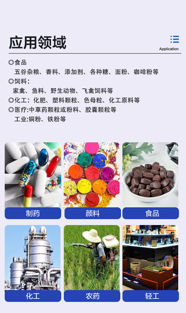 双锥回转真空干燥机、耙式干燥机、盘式干燥机、闪蒸干燥机、喷雾干燥机、带式干燥机、桨叶干燥机、高效沸腾干燥机、振动流化床、滚筒刮板干燥机、沸腾制粒机、湿法制粒机、热风循环烘箱、三维混合机、二维混合机、方形真空干燥机、V型混合机、旋转制粒机