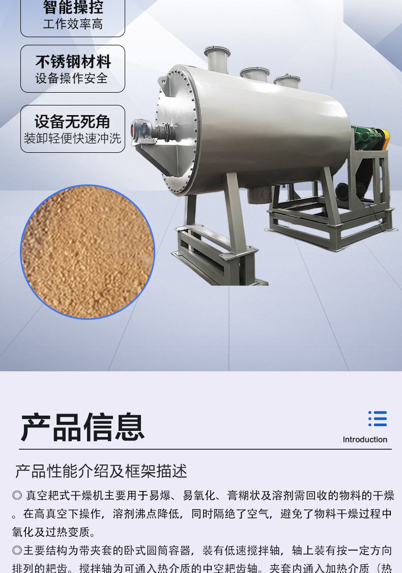 耙式干燥机 内加热搅拌真空干燥设备 筒式烘干机结构简单