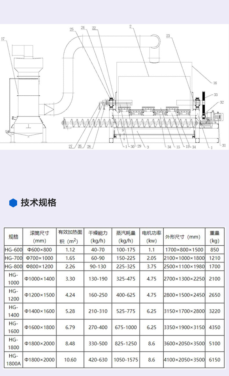 贝奇 滚筒刮板干燥机 粘土泥浆烘干机 内加热干燥设备 支持定制