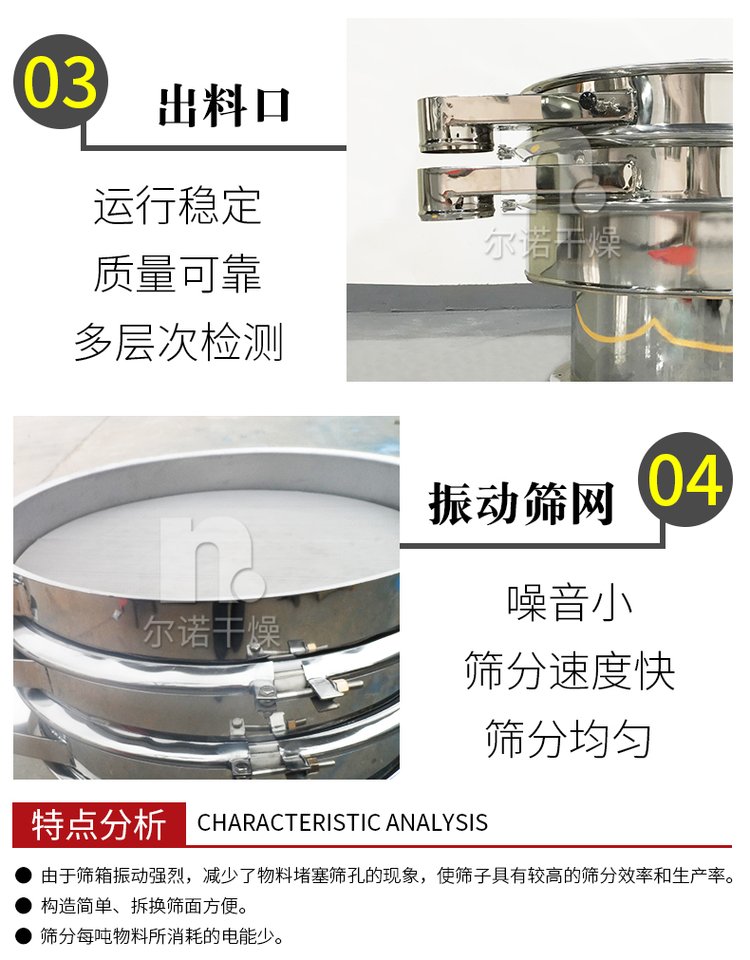 圆形振动筛 不锈钢 用于马铃薯红薯粉震动筛 食品粉精细粉末 尔诺厂家