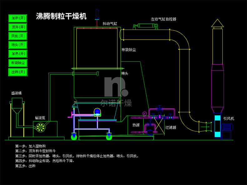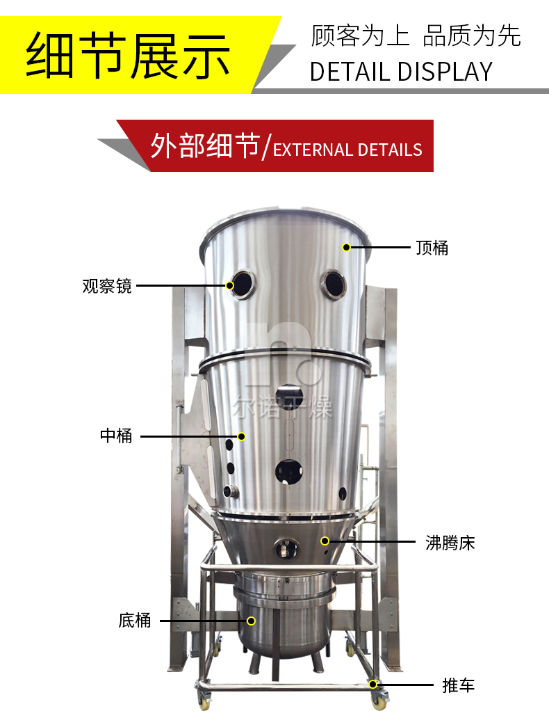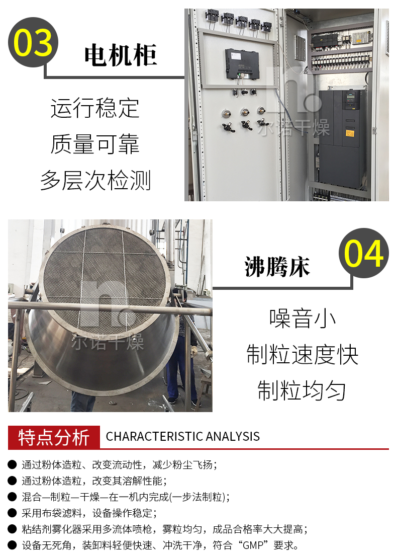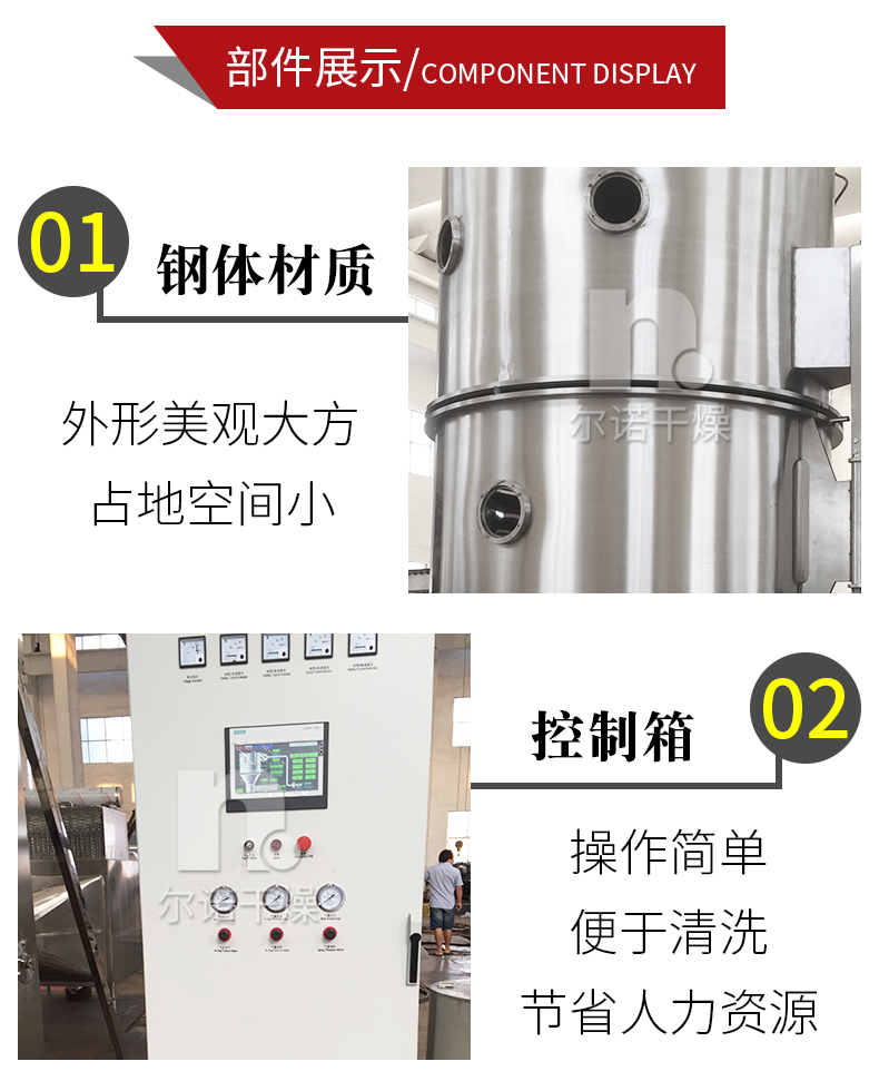 沸腾制粒干燥机厂家 用于食品发酵粉烘干机 复合肥流化床造粒机 尔诺