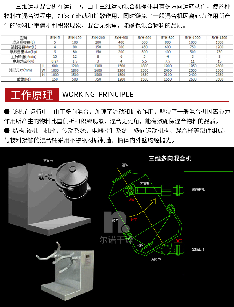 三维运动混合机厂家 用于调味品混料机 胡椒粉 药粉搅拌机 SYH 尔诺