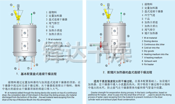 ◎真空型:在真空状态下操作的盘式干燥器,特别适用于热敏性物料的干燥。
