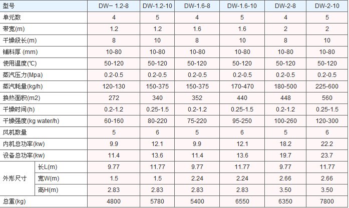 注:DW系列带式干燥机各种规格结构形式相同,其余规格可结合规格技术参数表推出。