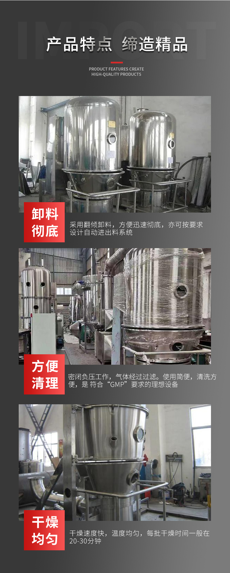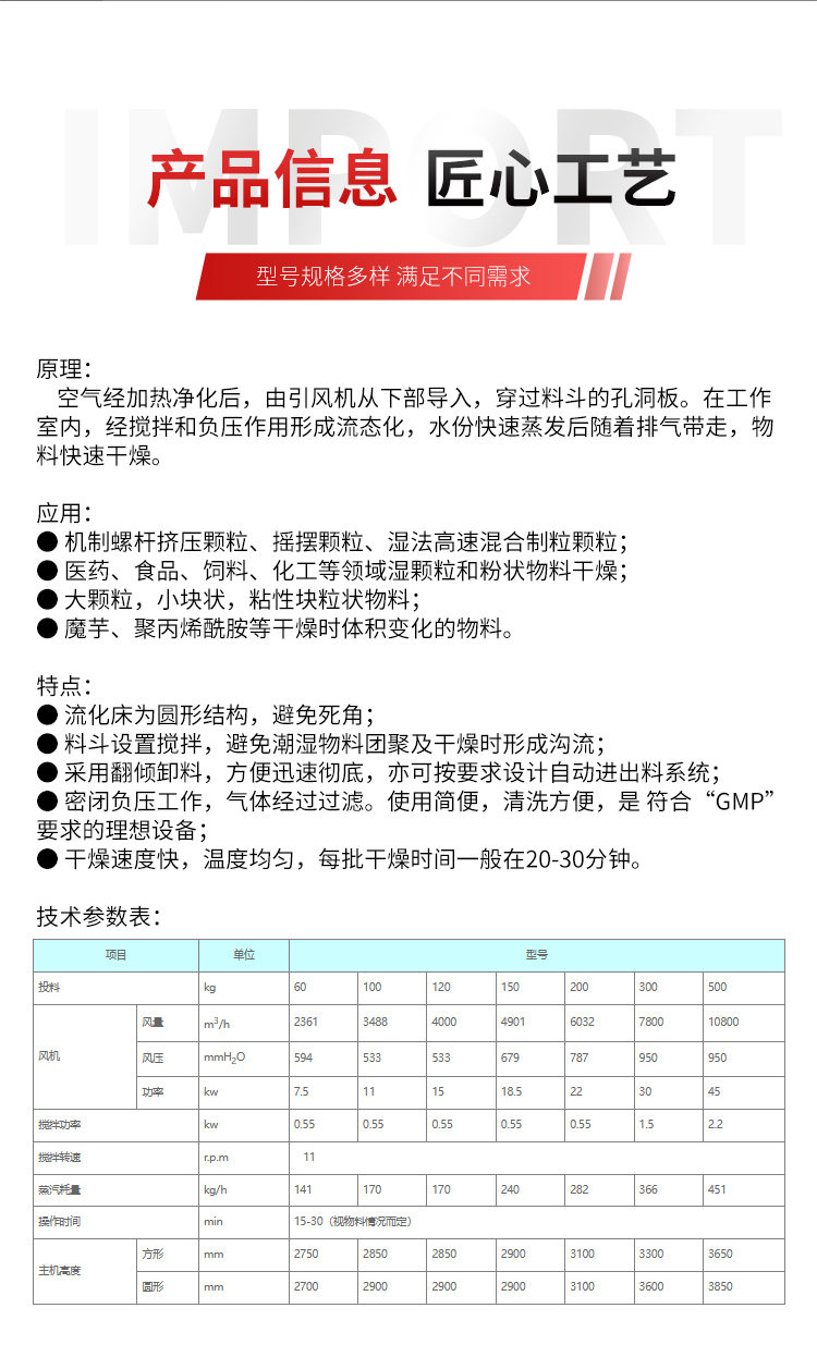 带式干燥机、喷雾干燥机、闪蒸干燥机、盘式干燥机、热风循环烘箱、振动流化床干燥机、回转真空干燥机、耙式真空干燥机、单锥螺带真空干燥机、方形真空干燥机、滚筒刮板干燥机、沸腾干燥机、沸腾制粒干燥机、回转滚筒干燥机、高速混合机、摇摆颗粒机、旋转制粒机、卧式螺带混合机、双螺杆锥形混合机、二、三维混合机、槽型混合机、V型混合机、30B粉机、方形振动筛、燃气热风炉