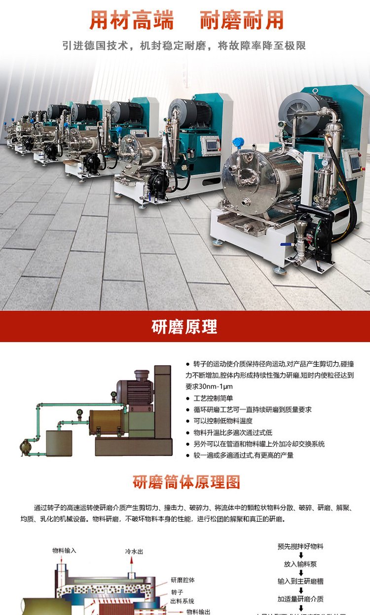 励岸宝 涡轮式全陶瓷纳米卧式砂磨机 研磨效率高 能量利用率高