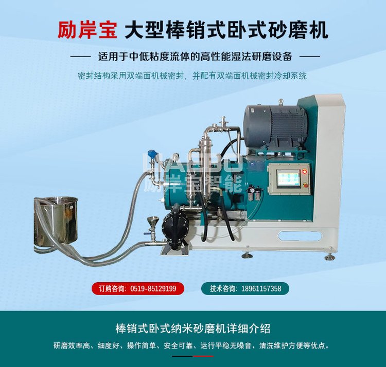 100L 石墨烯 磷酸铁锂 全陶瓷棒销式卧式纳米砂磨机 质量保证