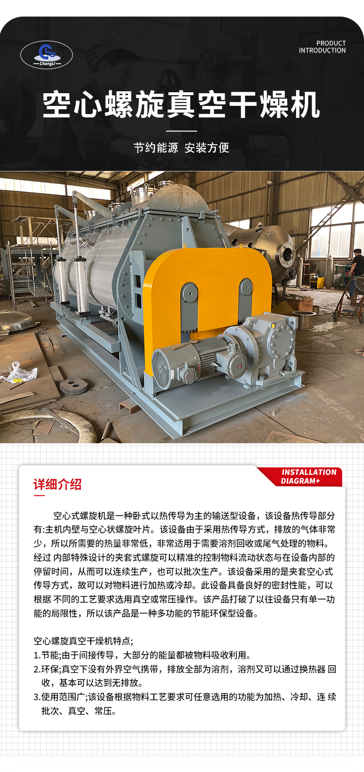 用于食品原料 空心螺旋真空干燥机 多功能设备 排放气体少 力度