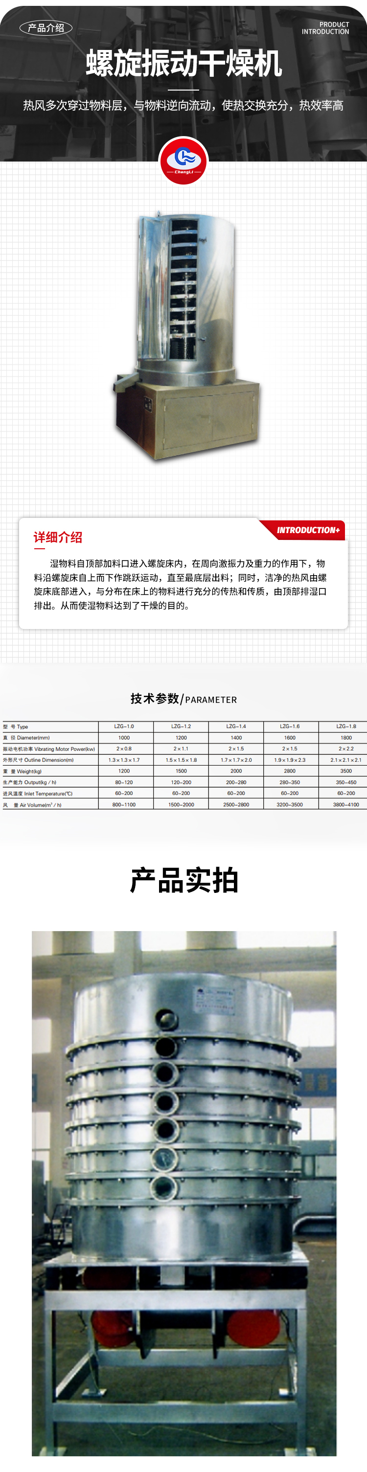 规格齐全 充分传热传质 机械加工领域 螺旋振动干燥机 力度