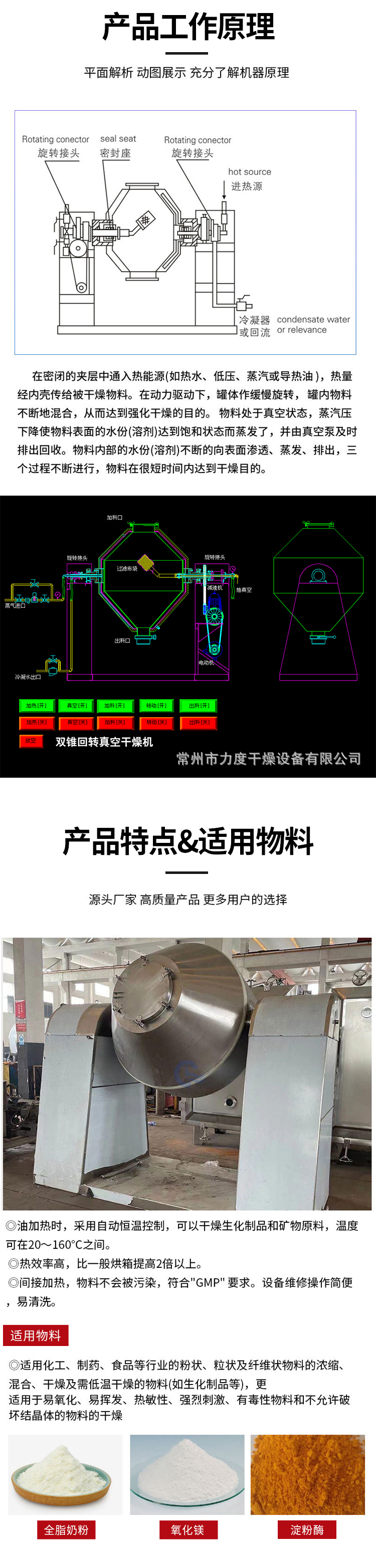 真空耙式干燥机、单锥螺带真空干燥机、闪蒸干燥机、喷雾干燥机、振动流化床干燥机、流化床制粒包衣机、脉冲真空干燥机、滚筒刮板干燥机、双锥回转真空干燥机、烘箱、制粒包衣干燥机