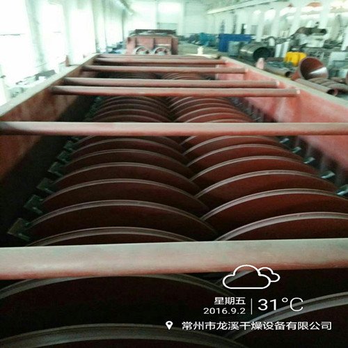 ● 桨叶干燥机能耗低:由于间接加热,没有大量携带空气带走热量,干燥器外壁又设置 保温层,对浆状物料,蒸发1kg水仅需1.22kg水蒸汽。