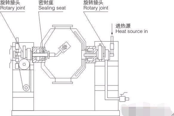 我公司根据双锥回转真空干燥机在实际使用过程中客户所反馈的问题,如双锥回转真空干燥机在使用过程中存在的抽滤面积使用率不高和抽滤头易堵塞的问题,在抽滤头结构上进行了的改进,将原先的单头抽真空结构改造成三头或多头抽真空结构,广泛使用于不锈钢双锥回转真空干燥机和搪瓷双锥回转真空干燥机,材质有不锈钢和钛材。使用情况表明,改进后的抽滤面积使用率提高,清洗频率降低,抽气量增大,加快了干燥的速度,并在双锥真空回转真空干燥机的门盖上做了保温结构,避免了热量的流失。传动结构上有由原先的皮带+链条,改成了齿轮联接,齿轮联接的精度要求较高,每一台双锥回转真空干燥机的罐体均要上镗床精密加工,保证了每一台罐体的同心度。