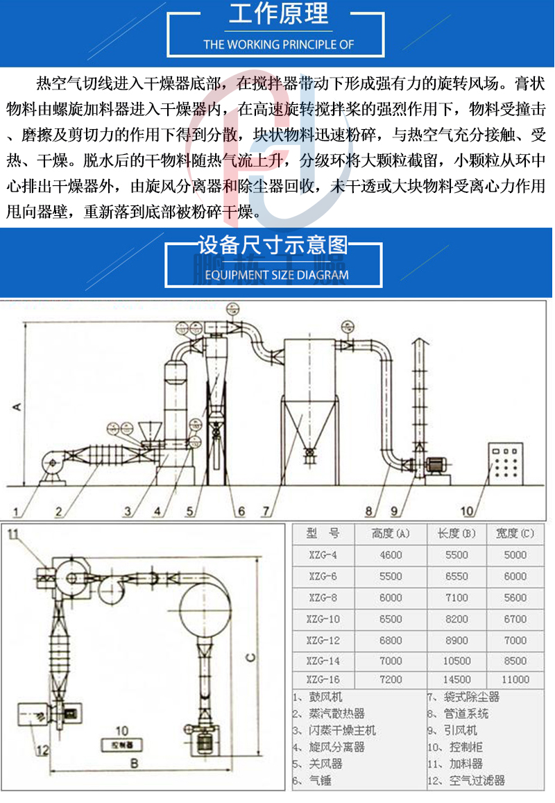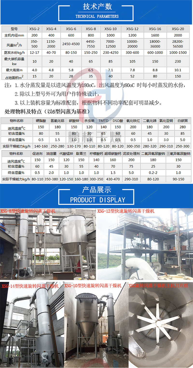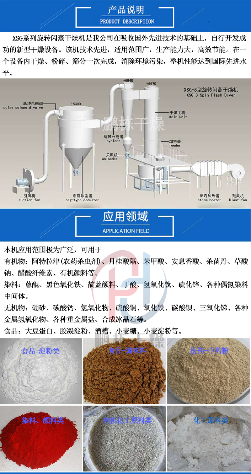 食品血粉旋转闪蒸干燥机 农药干燥设备 化铁红闪蒸烘干机 可连续干燥