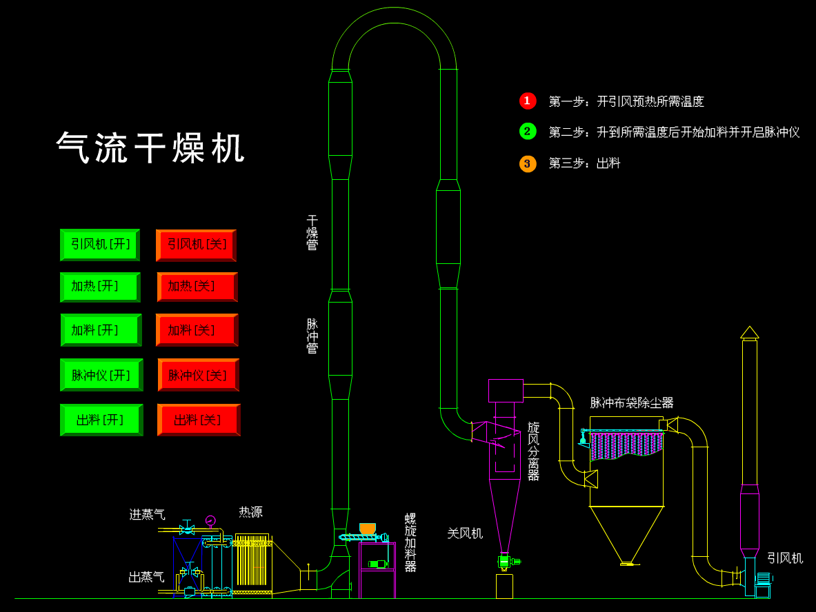 产品概述 QG系列脉冲式气流干燥机是大批量的干燥设备,它采用瞬间干燥的原理,利用载热空气的快速运动,带动湿物料,使湿物料悬浮在热空气中,这样强化了整个干燥过程,提高了传热传质的速率,经过气流干燥的物料,非结合水分几乎可以全部除去(例如:淀粉等物料进料含水量≤40%左右,成品出料可为13.5%), 并且所干燥的物料,不会产生变质现象,产量可比一般干燥机干燥有显著提高,用户可在短期内取得较高的经济效益。应用范围 本公司生产制造QG气流干燥设备,引进美国先进技术设备,经过独特的设计,已达国际**,本产品整个设备自动化程度高,投资少,耗能低,占用人力和厂房面积比较少,通用面广,是理想的现代化设备。产品特点 QG气流干燥机,适用于制药、化工、食品、建材、塑料等行业的粉状物料的干燥除湿,例如:淀粉、鱼粉、食盐、酒糟、饲料、面筋、塑料树脂、矿粉、煤粉、糖氯酸、A·S·C笨甲酸、2·3·酸,聚氯乙酸聚丙稀、硫酸钠、焦亚硫酸钠等多种物料的干燥。 我公司就气流干燥设备对外咨询,并代为设计制造非定型气流干燥机。