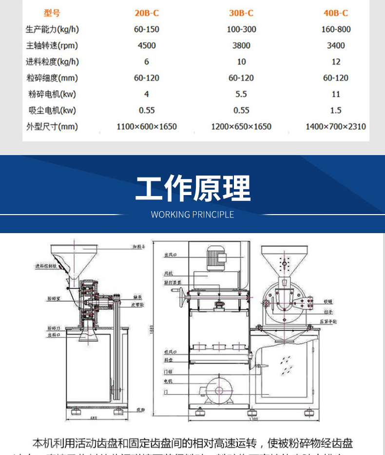 60B万能粉机 不锈钢齿盘超细磨粉机 动物饲料磨粉设备