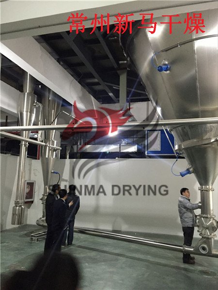 2、 冷冻除湿风送冷却集中收料:此项技术可使干燥物料迅速降温冷却,避免了物料因高温造成酵母灭活和物料因高温软化结块现象,由于风送空气经过过滤和除湿避免了吸湿性物料吸湿结块等现象,并且干燥后物料经降温后可直接包装。