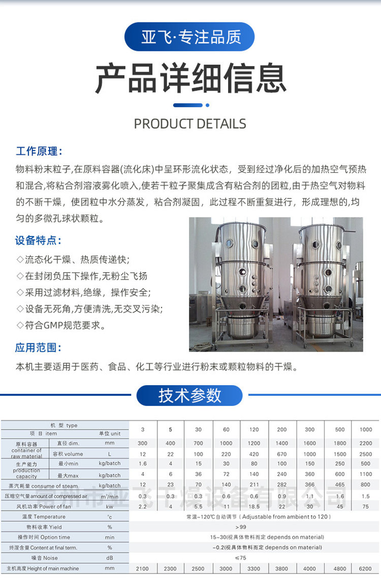 亚飞 沸腾制粒干燥机 中药冲剂颗粒机 一步造粒设备 可定制