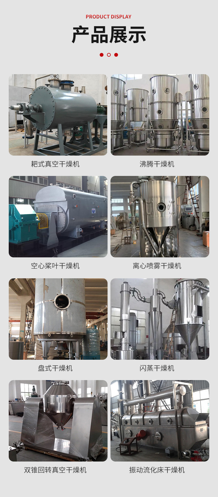 干燥机、污泥桨叶干燥机、闪蒸干燥机、盘式干燥机、热风循环烘箱、带式冷凝造粒机、双最真空干燥机、沸腾干燥机、振动流化床干燥机、三维混合机、耙式真空干燥机、喷雾干燥机、干燥设备、制药设备、化工设备、石蜡造粒机、鸡精生产线设备、粉机、摇摆颗粒机