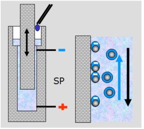 滴定在一个10ml的水性分散体系进行。进行滴定的浓度范围从0.001%到10%v/v,而对于单个电位测试浓度可以高至50%v/v。振荡活塞产生流动电势SP,同时将滴定液混合到样品中,并避免悬浮体系的沉降。滴定的速度通过最短时间内充分的混合而得到了优化。