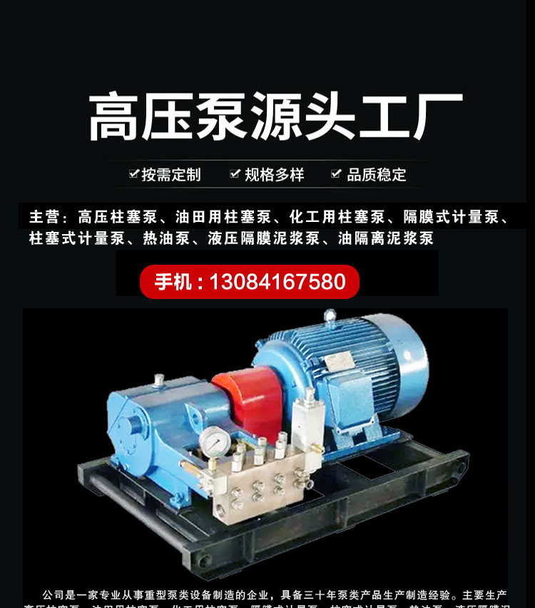高压泵、计量泵、热油泵、柱塞泵、往复泵、高压柱塞泵、高压往复泵、三柱塞高压泵、五柱塞高压泵、高压注聚泵、高压注水泵、油田注水泵、高压清洗泵、水力增压泵、增压泵、除磷泵、高压聚合物泵、高压水除磷泵、油管清洗泵、CO2高压泵、定量泵、隔膜式计量泵、柱塞式计量泵、热油蒸汽往复泵、蒸汽往复泵