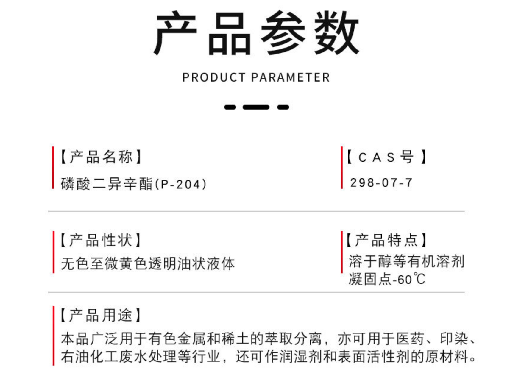 P204萃取剂 工业级磷酸二异辛酯 稀有金属分离剂 稀土金属萃取
