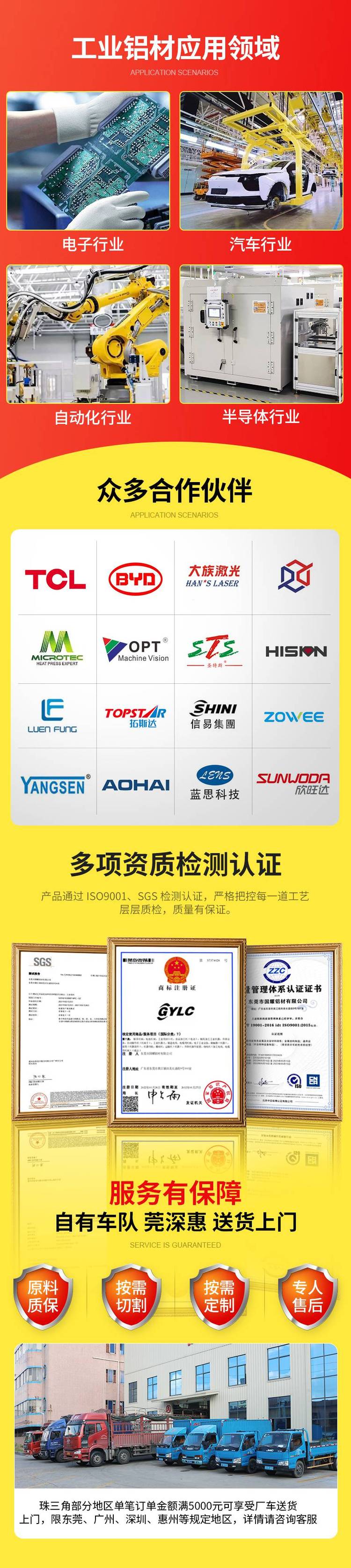 铝型材、设备框、防护罩、机器人、鱼缸架、轴承座、铝材挤压、机箱外壳、机械手模、数控车床、机械零件、铝材框架、检测设备、铝合金型材、物流分拣线、桁架机械手、金属加工材、物流拣货线、直线模组型材