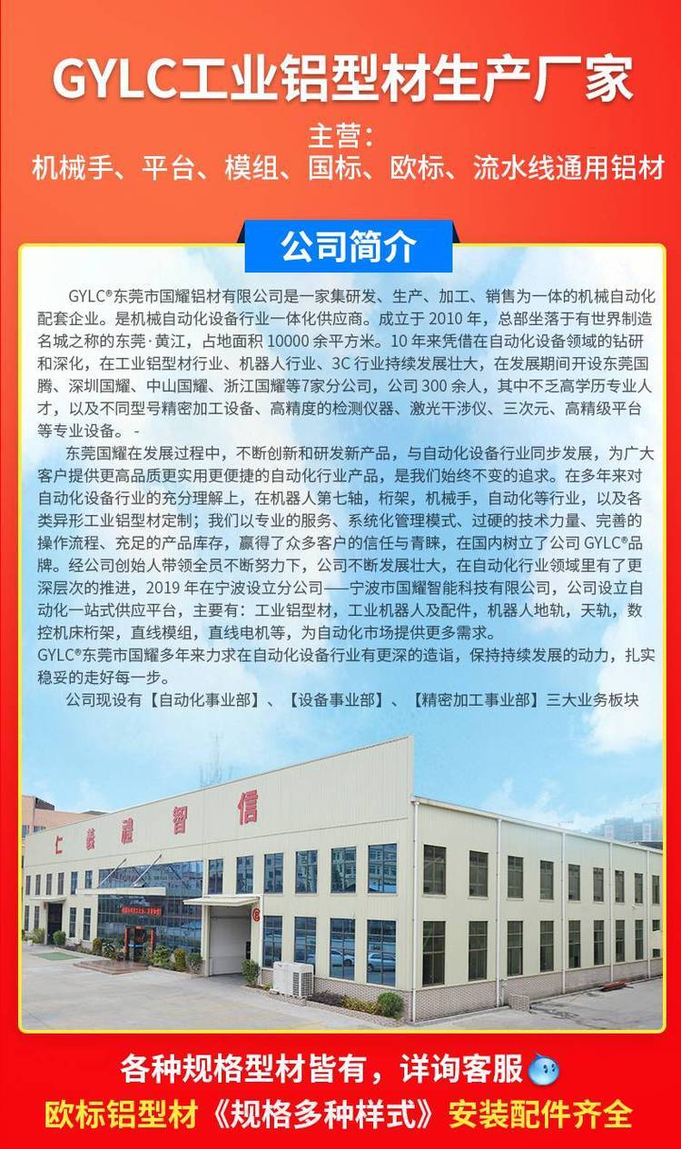 铝型材、设备框、防护罩、机器人、鱼缸架、轴承座、铝材挤压、机箱外壳、机械手模、数控车床、机械零件、铝材框架、检测设备、铝合金型材、物流分拣线、桁架机械手、金属加工材、物流拣货线、直线模组型材