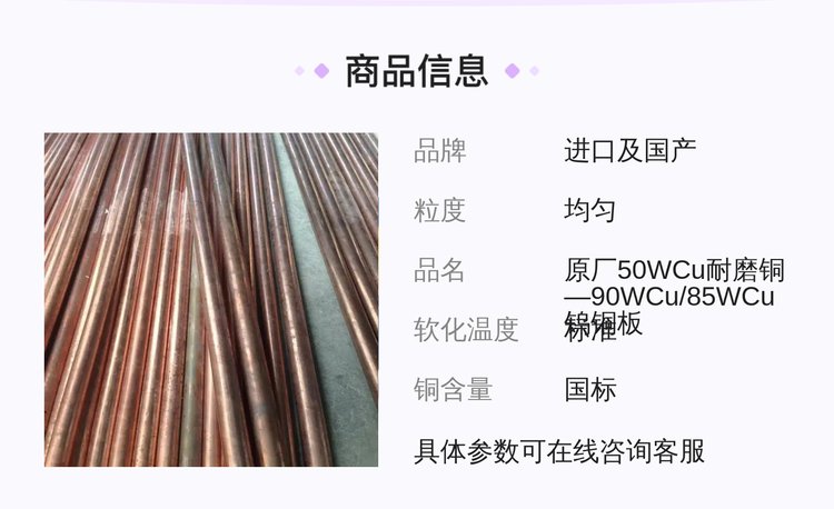 原厂50WCu耐磨铜—90WCu图片-85WCu钨铜板10 12 15MM