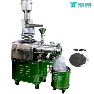 琅菱的干式砂磨机GSY系列是铁氧体研磨中的常用设备,在生产中它可以将物料研磨到3-15微米,更均匀的出料粒径可以提高磁体表面的平滑度,提升在设备运转中磁体的耐磨和耐热的性能。物料在研磨中首先通过送料进入研磨室,当研磨到一定程度后,在负压的作用下,物料被吸出研磨室,在出口处有自动筛分装置,达到指定研磨粒径大小的物料将会在离心力的作用下分离出来,颗粒仍处较大状态的物料将会自动回到研磨室内进行二次的研磨过程。