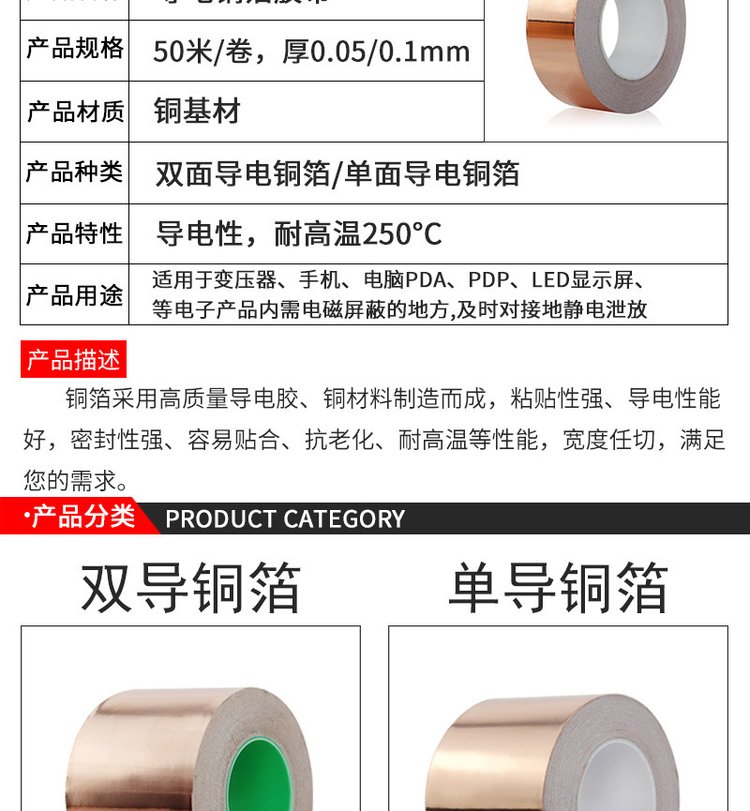 乾龙生产主板散热铜箔贴纸 导电胶带背胶自粘铜箔胶带 单双导铜箔