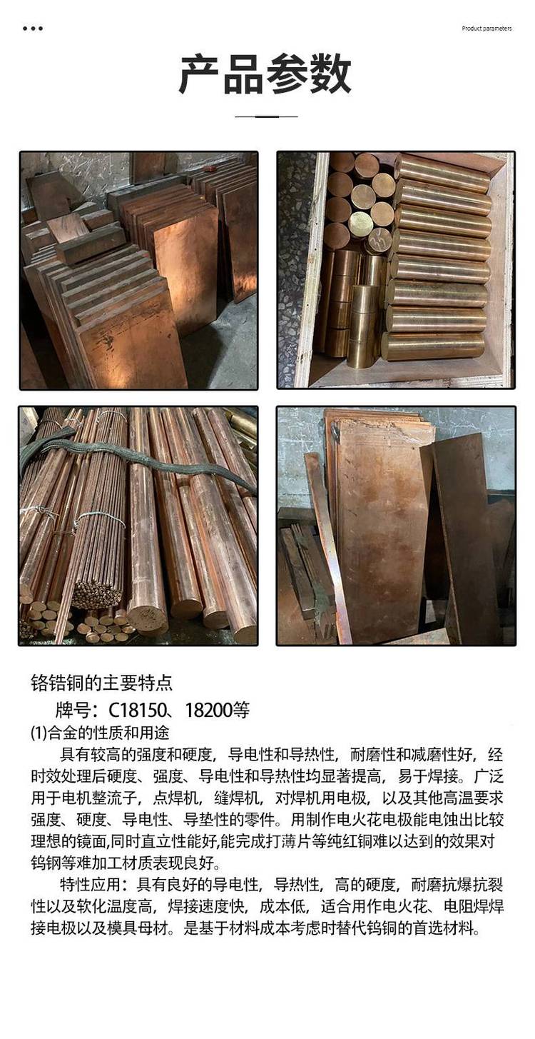 铬锆铜电极头 铜镶钨焊接电极材料 C18150铬镐铜棒导电嘴 耐磨点电焊