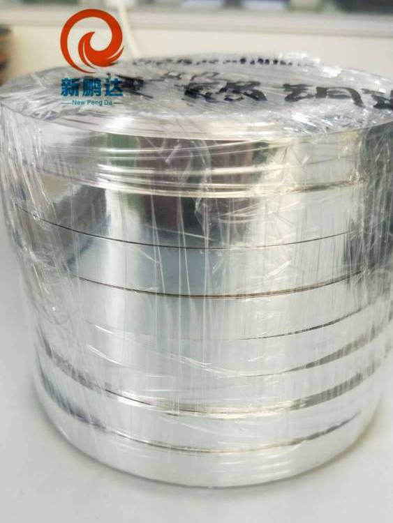 镀锡铜箔胶带(厚度约为40U)的镀锡铜箔为基材,以导电压敏丙烯酸粘合剂均匀塗布,粘著面以离型纸贴合。(可根据客户需求,定制各种厚度不带胶的镀锡铜箔,可模切冲型,各种宽度裁切)
