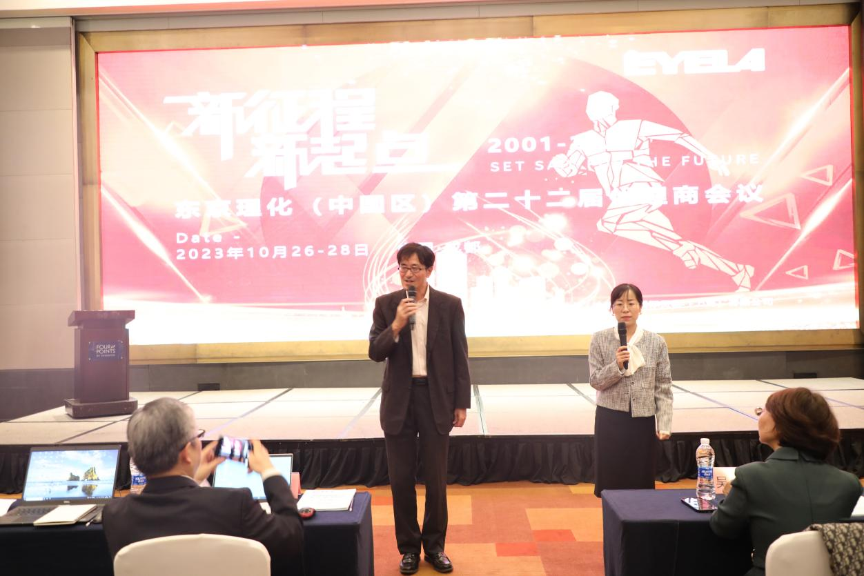 会议开始,东京理化千野英树社长以视频的方式致辞,感谢代理商朋友多年来对EYELA品牌的鼎力支持和推进,同时对公司整体的发展和计划做出了说明,并对今后中国市场的发展指明了方向。