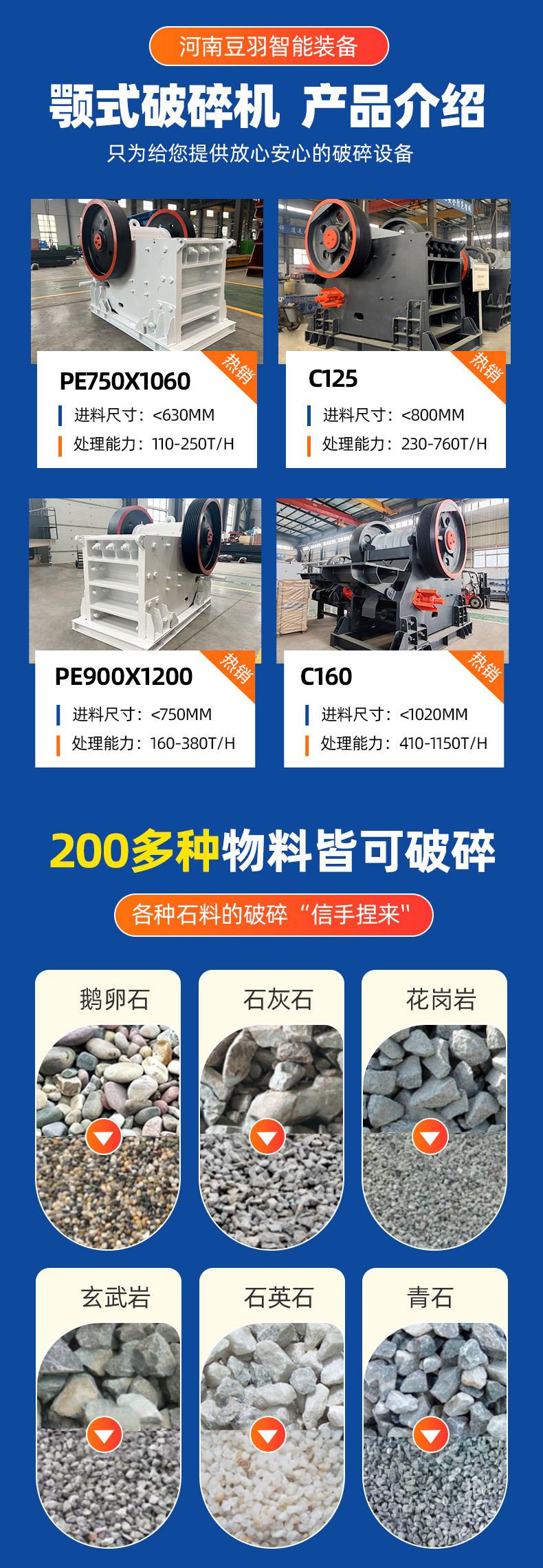颚式破碎机 矿山破碎设备 采石场石头粉碎机 石子生产机械