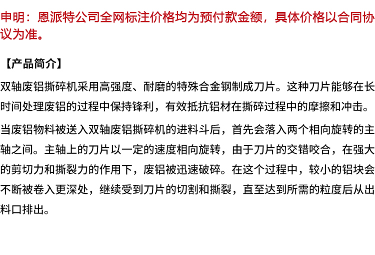 压饼机、破碎机、打包机、撕碎机、刨花机、屑饼机、压块机、套袋机、粉碎机、铝屑压饼机、铁屑压饼机、锤式破碎机、双轴破碎机、液压双轴破碎机、三向金属打包机、汽车外壳打包机、料斗式打包机、门盖式打包机、全自动卧式打包机、家电破碎生产线、锂电池破碎生产线、断桥铝破碎方案、汽车壳破碎分选方案
