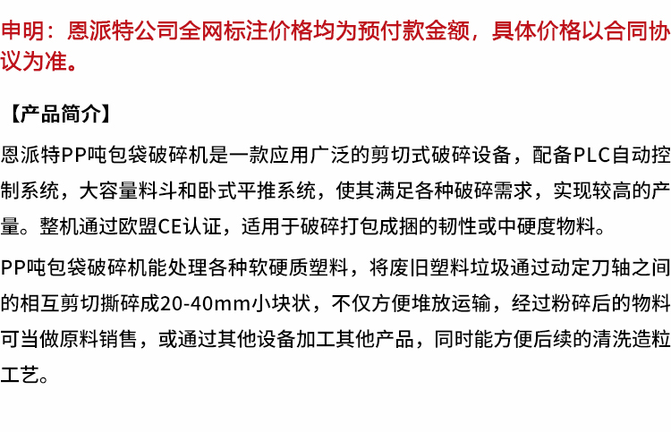 恩派特PP吨包袋破碎机 塑料薄膜轻松撕碎 防缠绕不卡机