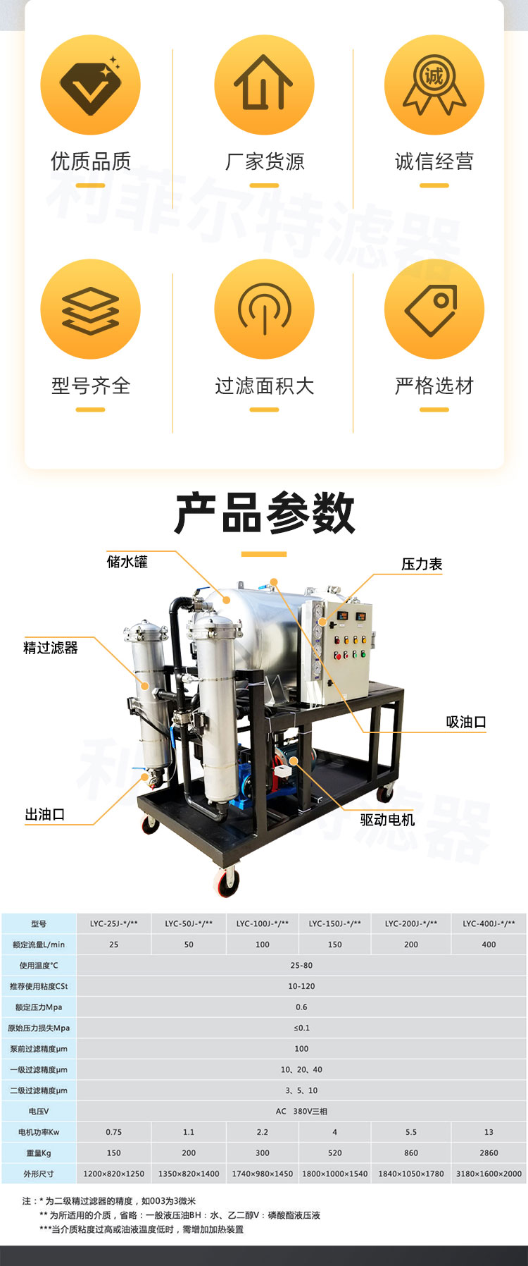 利菲尔特 聚结脱水滤油机 除水除杂 油品净化 液压系统