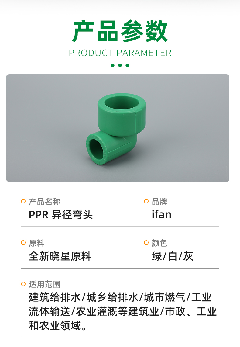IFAN-ppr异径变径弯头 PPR水管配件自来水管接头 家装工程风帆出品