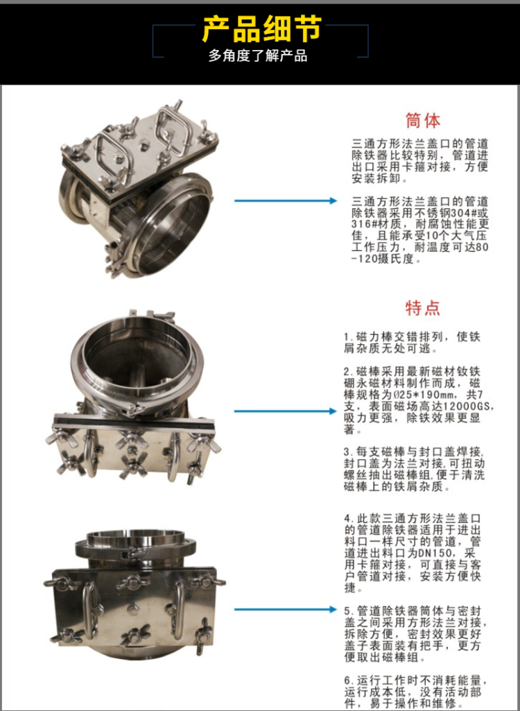 法兰管道式永磁除铁器有效处理污水中的金属杂质可订做