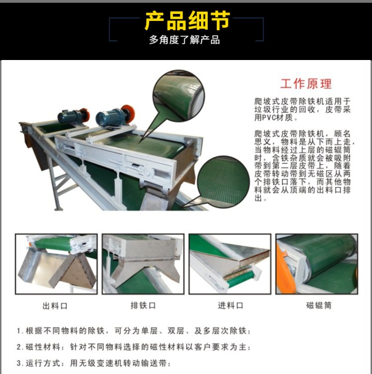 厂家直供高效矿山石英砂永磁除铁器带式分选设备药品食品除铁