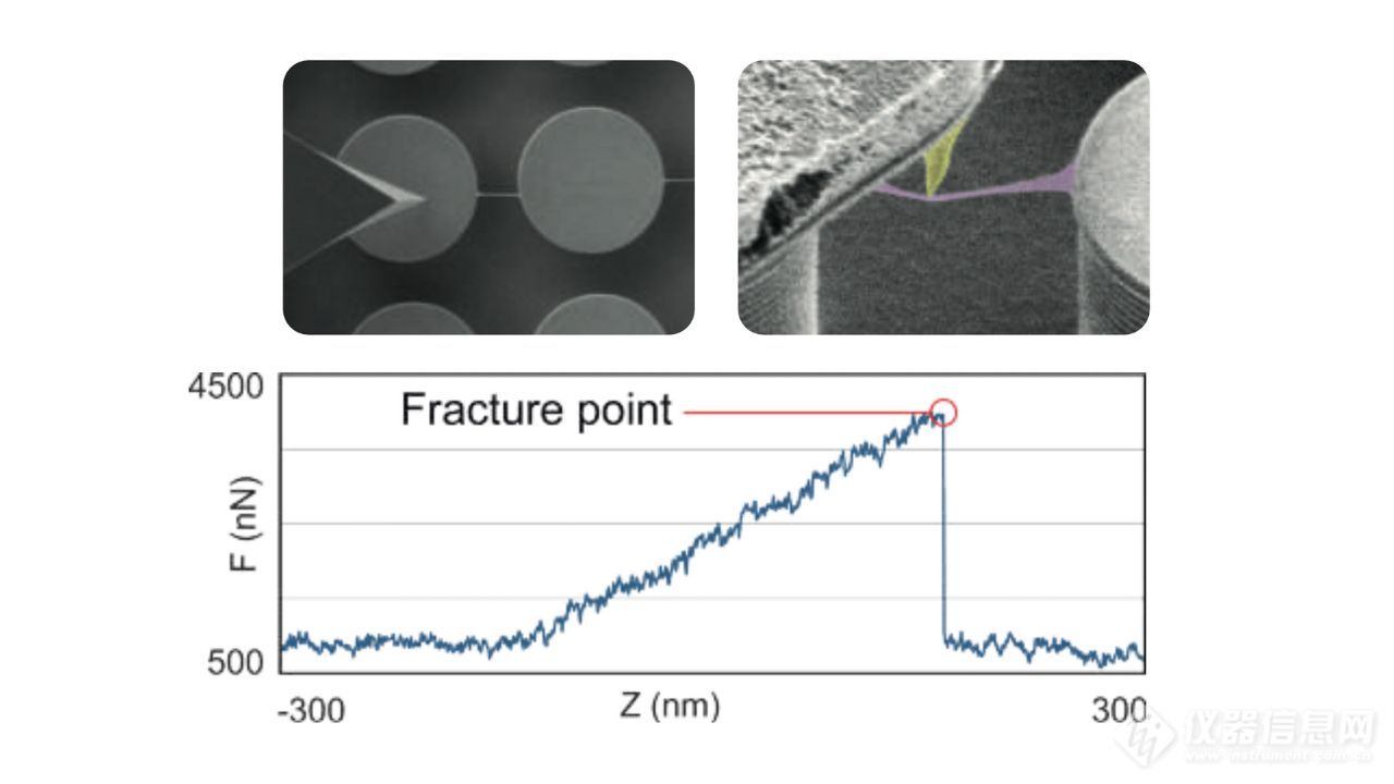 悬挂蜘蛛丝纳米线因其独特的机械性能而被研究,通过超精确定位AFM 尖端在悬挂的纳米线上。力-距离光谱学使得确定纳米线的弹性和塑性 变形成为可能。