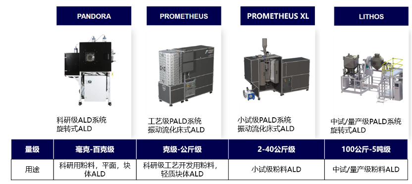 材料普适性,赋能全域场景:从锂电正极材料、金属催化剂到药物颗粒,粉体 ALD 可兼容氧化物、氮化物、有机物等多种涂层,且工艺温度范围广(常温至 400℃),满足热敏感与高温材料的双重需求。